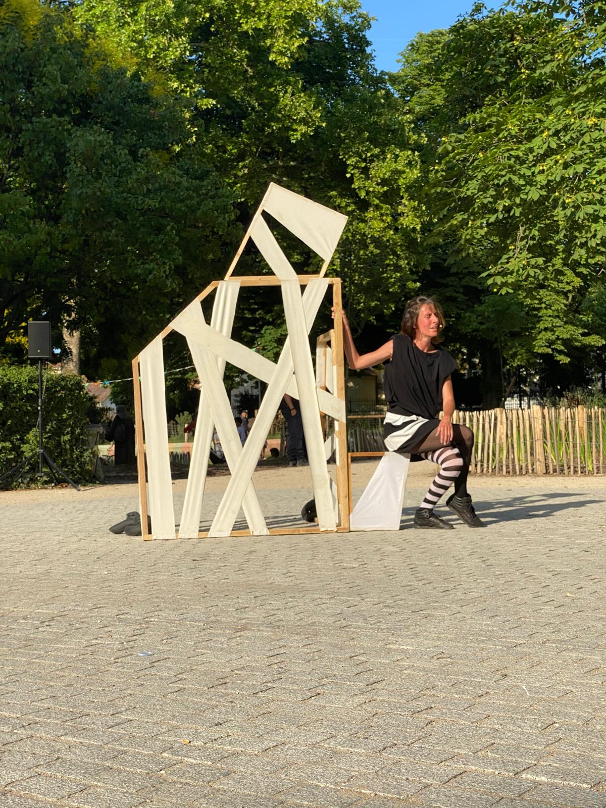Nous cheminons vers une version pour l’espace public qui nous stimule grandement. Le travail chorégraphique s’amplifie, notre musicien devient nomade et notre décor également, avec de magnifiques roulettes ! On ne vous en dit pas plus…